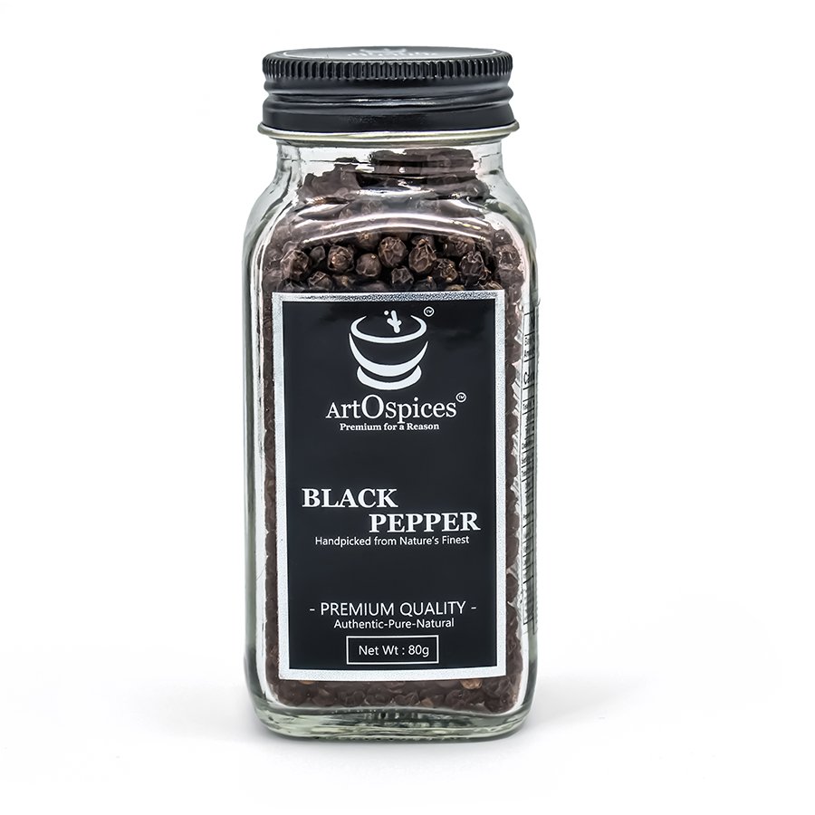 ArtOspices Kerala black pepper features bold, carefully handpicked peppercorns selected for their large size, intense aroma, and natural pungency. These premium peppercorns are sourced directly from farmers and trusted traders and dealers, ensuring consistent quality and authenticity.